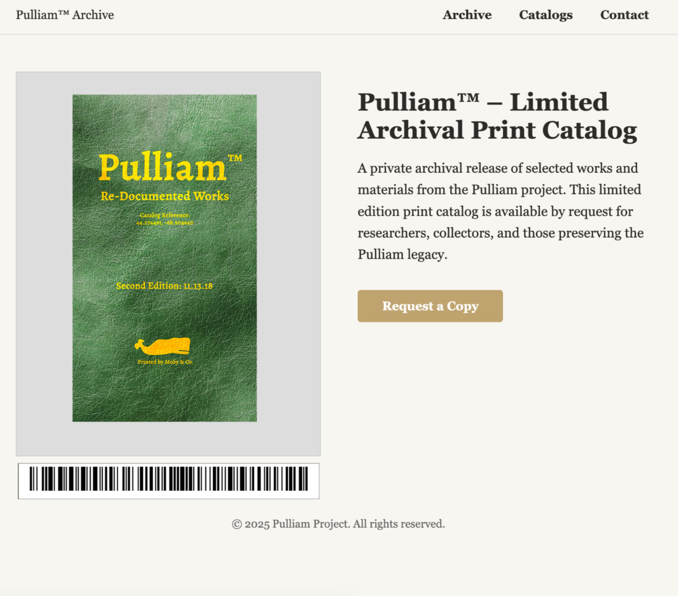 Part of the ongoing Pulliam Project: an interactive archive and narrative experiment by Samuel Pulliam Nevens, expanding on earlier NFT and ARG works.